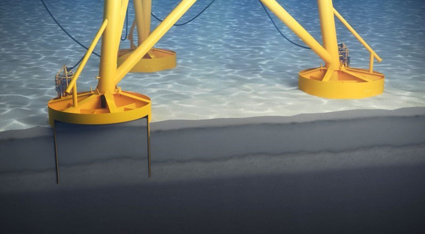 Så presses bøttefundamentene videre ned i havbunnen med sugekraft lik enorme hydrauliske jekker.