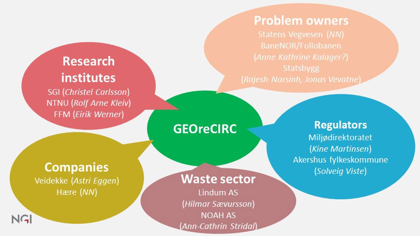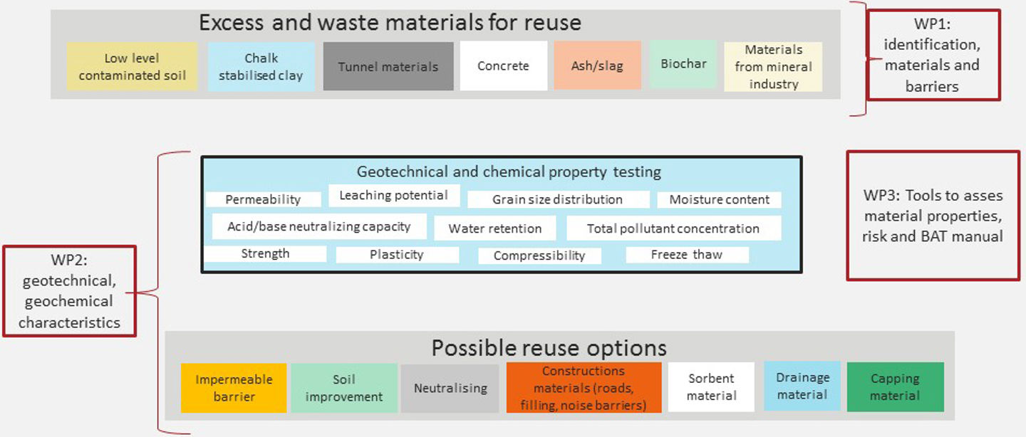 Within GEOreCIRC we will focus our efforts on increasing the reuse of: excess ashes from incineration processes, material from tunnel constructions, soil that has been contaminated at a low level, excess materials from the mineral processing industry, chalk stabilized clay and slag. This will be achieved by investigating methods that can enhance the physical and chemical characteristics of the materials in order that they are suitable candidates for reuse.