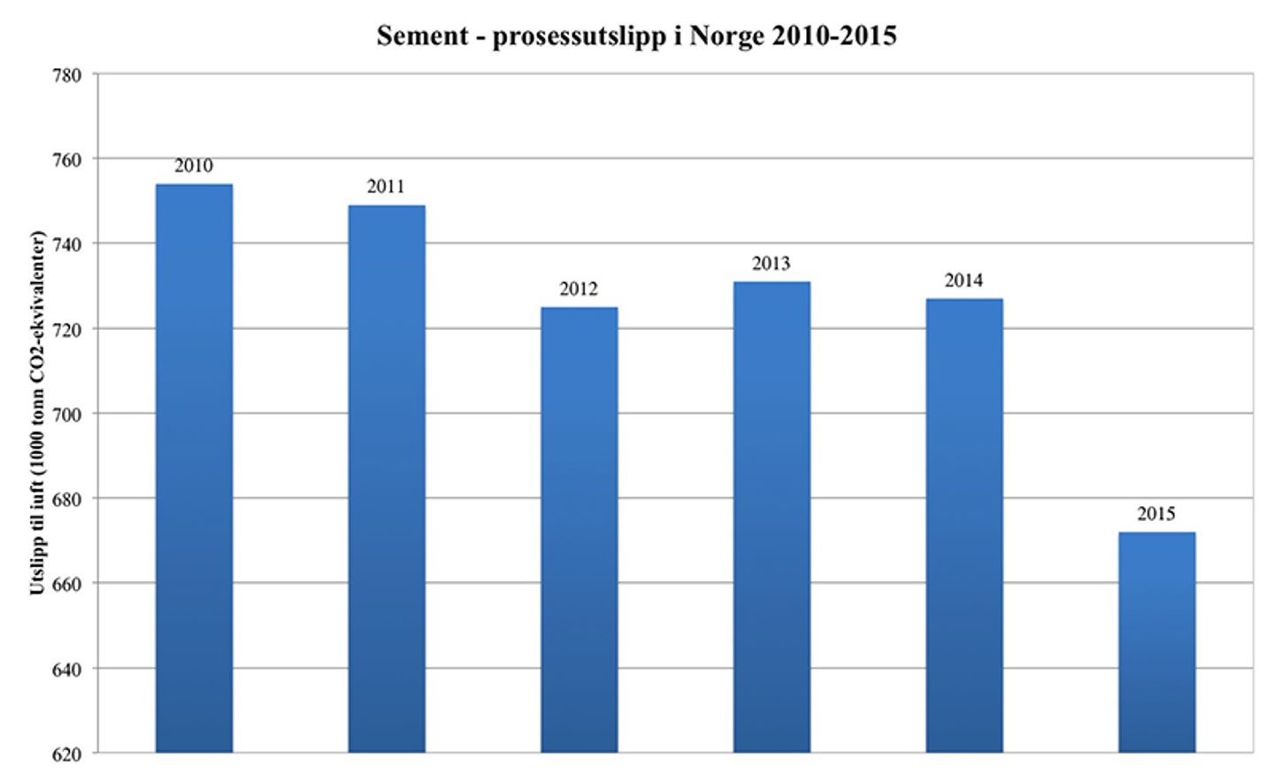 CO2-release during production of cement in Norway 2010-2015