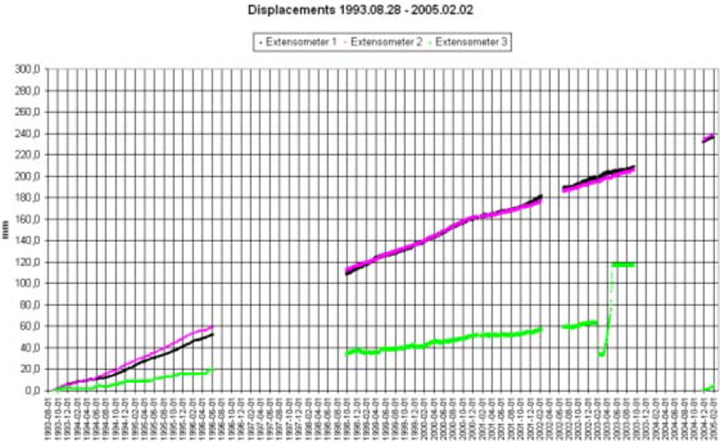The project will use existing monitoring data, e.g., from the Åknes site in Møre & Romsdal, where automatic extensometers have been operating for more than 10 years. Several new monitoring systems will be installed at this site during the next 2 years, and these data will be an essential part of these studies.