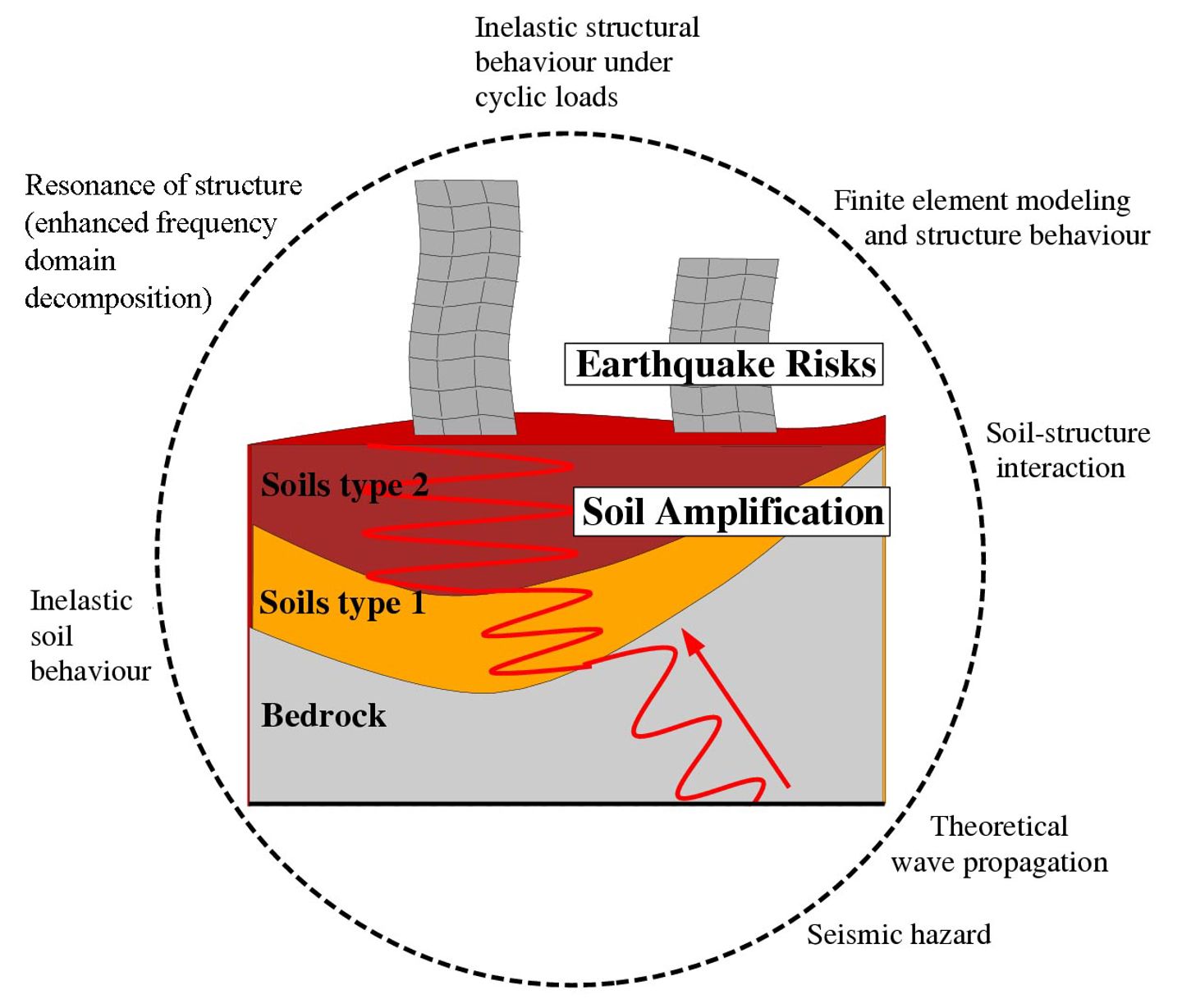 Many fast-growing cities today are located on old lake beds and landfills with strong soil amplification potentials. The shaking contribution of these factors is essential to research targets.