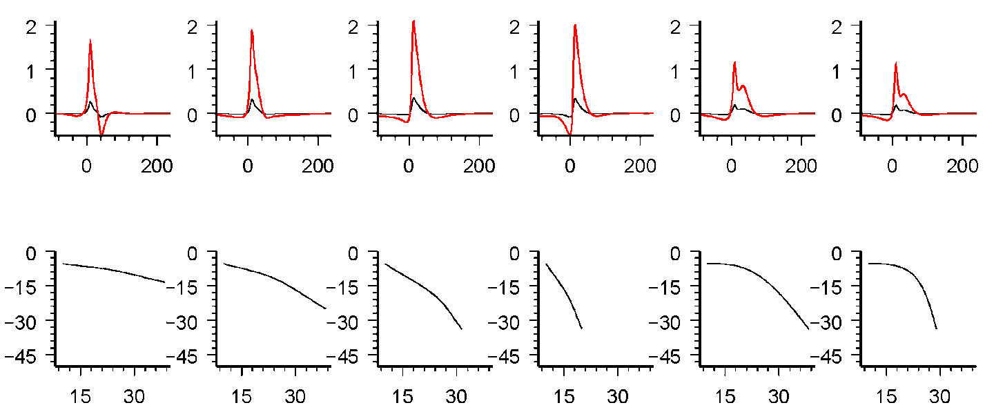 Figure 11. Influence of change fault plane bending; top: vertical displacement (red: bended fault plane, black: comparison to homogeneous model), bottom: sketch of bended fault plane.
