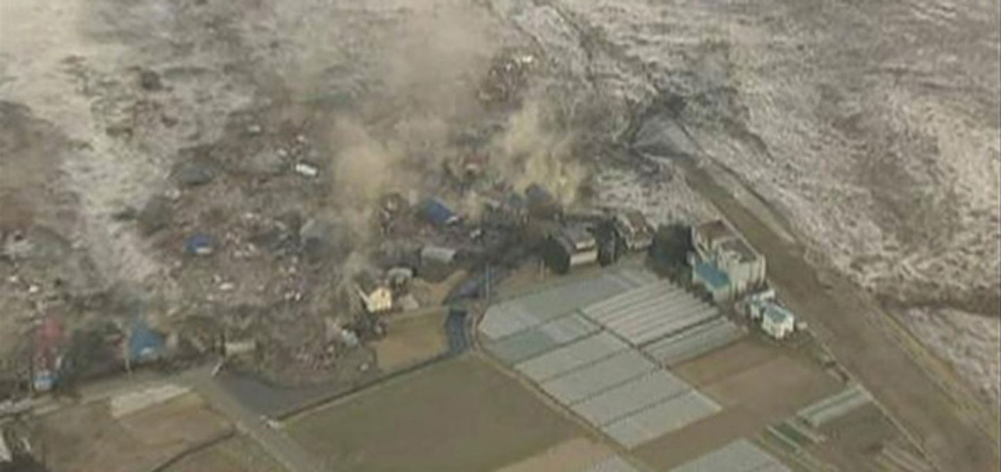 A tsunami devestated Japan after the earthquake 11. March 2011