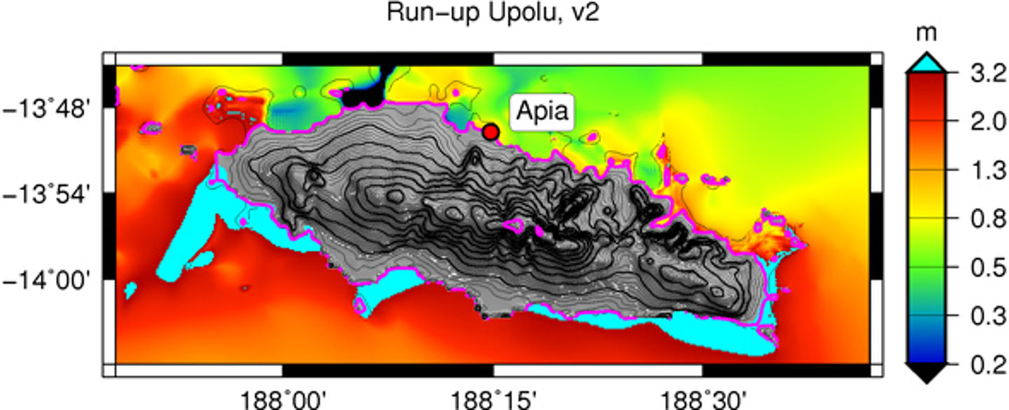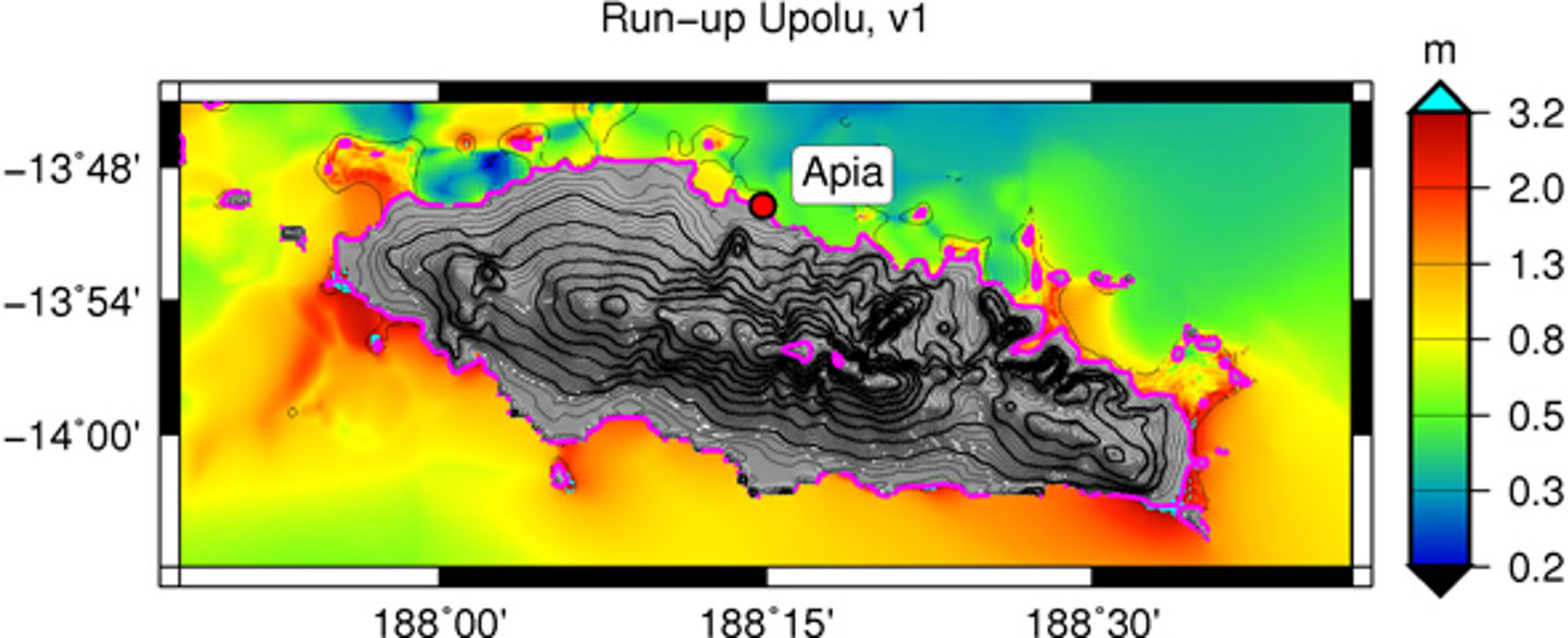 Scenario "v1" at Samoa (Upolu) give 0.5-3 metre