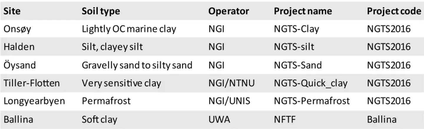 The NGTS research consortium is led by NGI and includes NTNU, SINTEF/UNIS and the Norwegian Public Roads Administration. The test sites will be used as field laboratories for development, testing and verification of new innovative methods for site investigations and testing procedures. The five test sites have been chosen as representative for specific soil types which include: