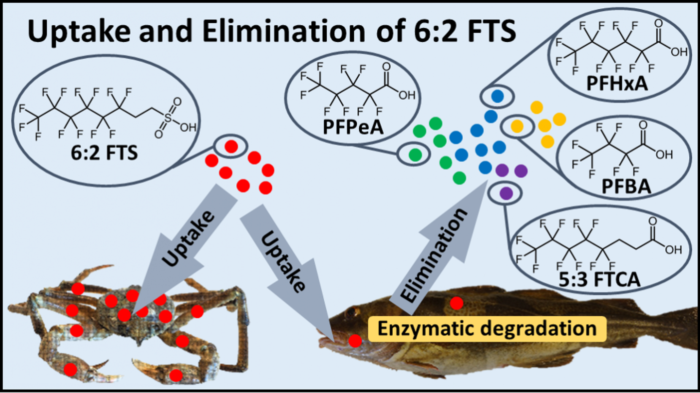 The PFAS source at Bodø airport is fire fighting foam (aqueous film-forming foams, AFFF), which were used at the airport in previous years during fire fighting practice. Our results show that PFAS concentrations in snails, crabs and fish reflect this historic use and that the replacement compound 6:2 FTS accumulates in snails and crabs.
