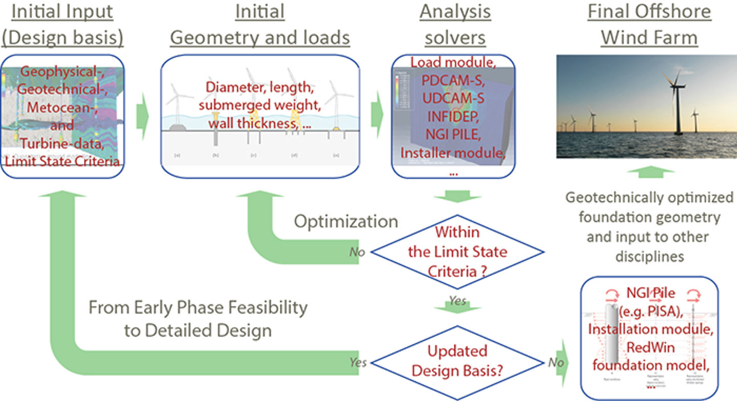 In order to use these tools and methods in a streamlined design workflow, they have to be implemented in modules and the input generated in WP2, WP3 and WP4, need to be standardized. This enables the exchange of information and data between these modules, which is necessary since several procedures shall be executed in parallel to enable a foundation geometry optimization.