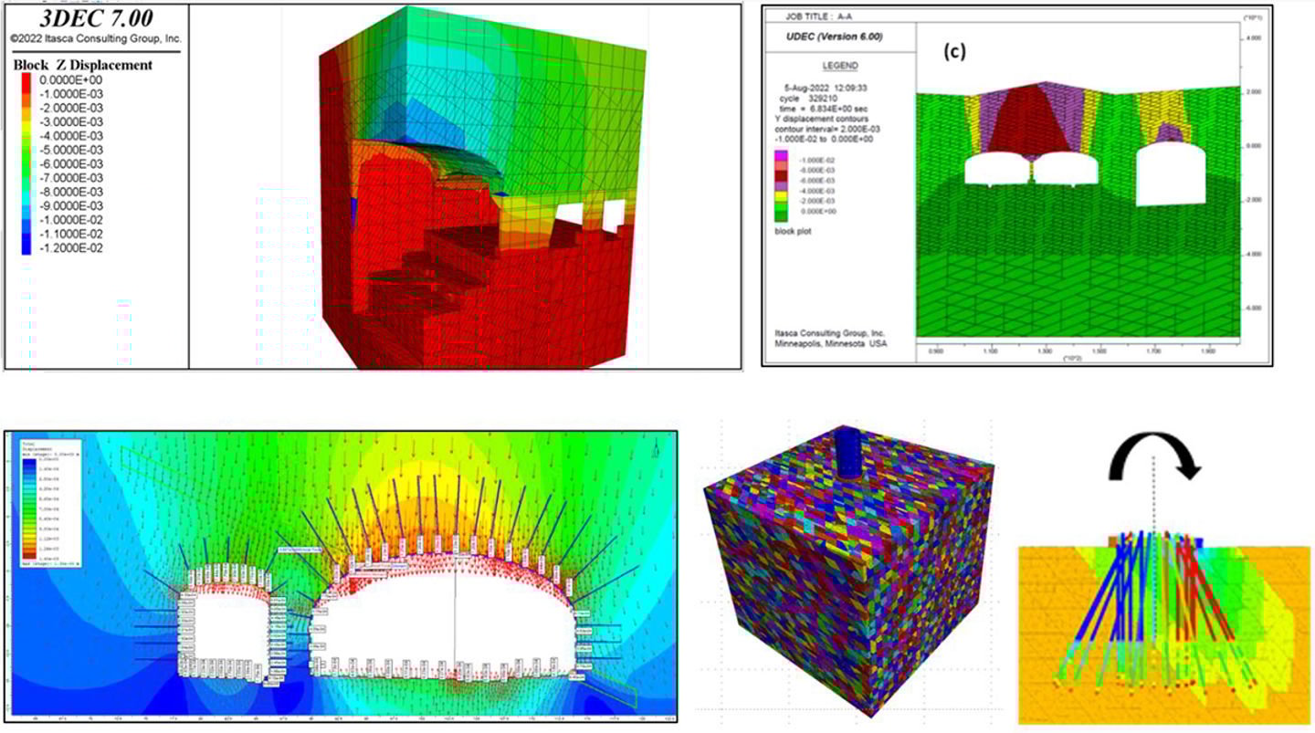 - numerical analyzes (UDEC, FLAC, Phase2, etc.)