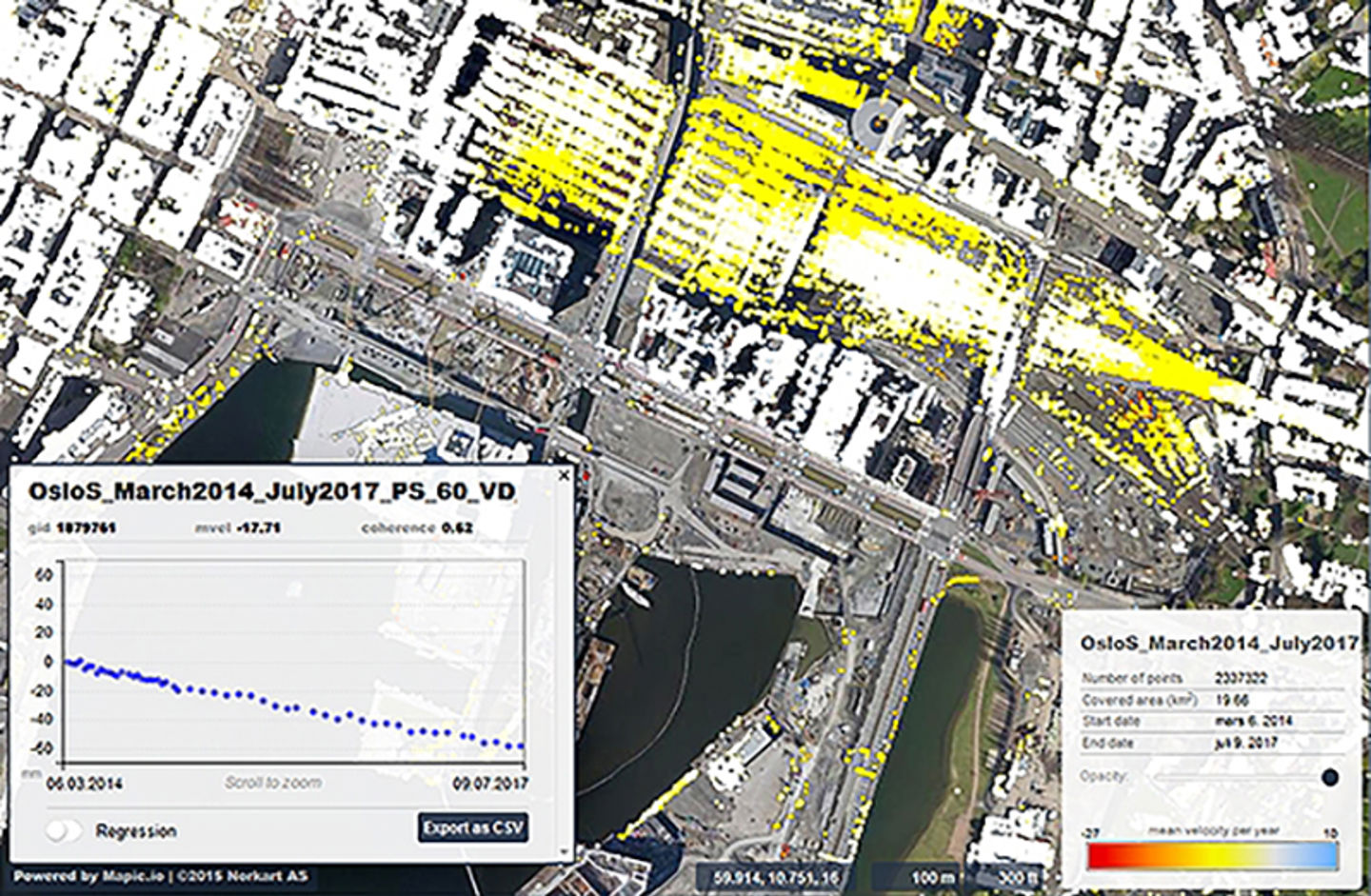 NGI constantly monitors client assets, including railway and highway systems, to enable decision-making for state and local agencies across Norway and internationally. We use InSAR in the planning, construction, and monitoring of: