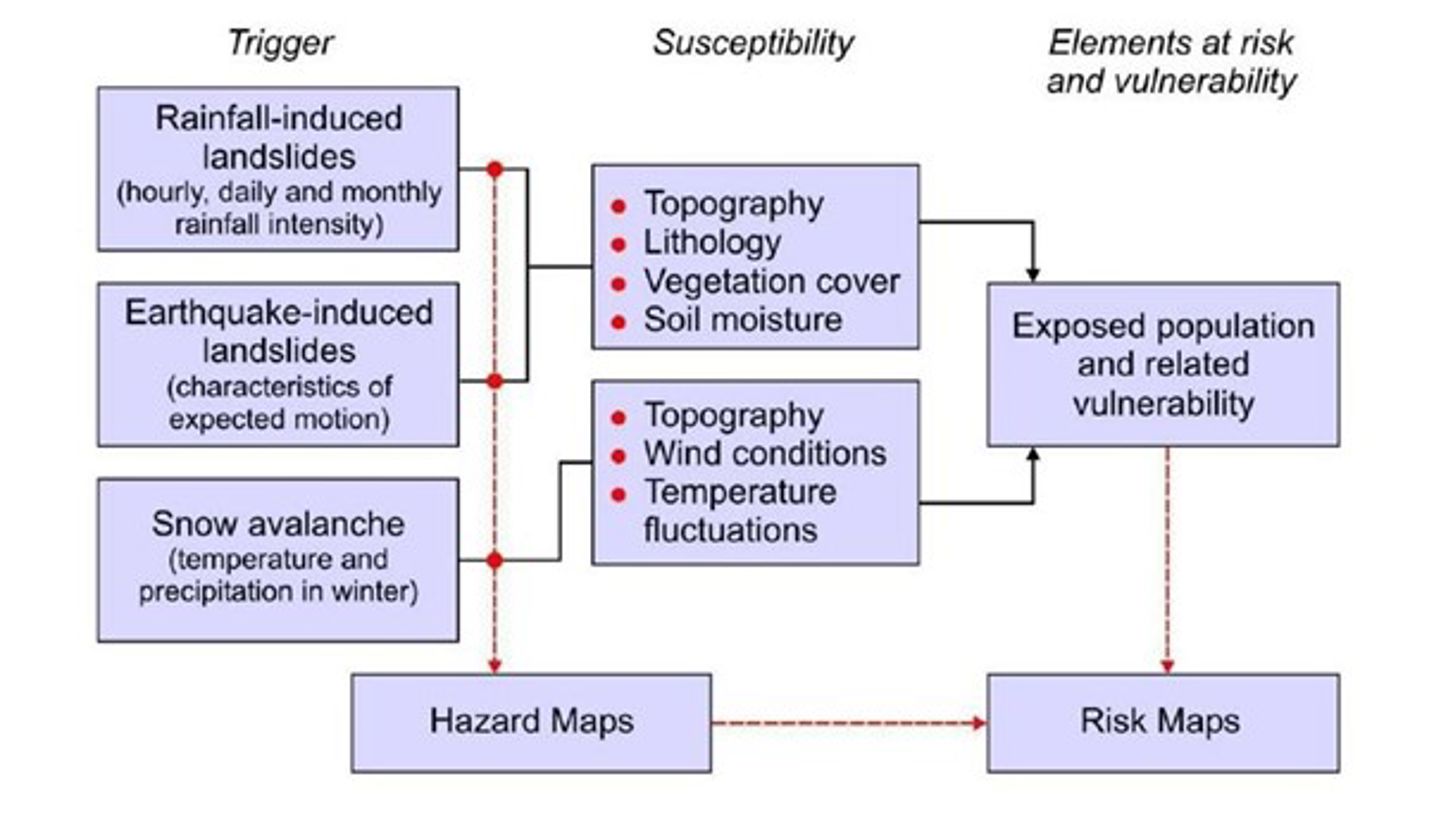 Landslide risk maps at a regional scale.