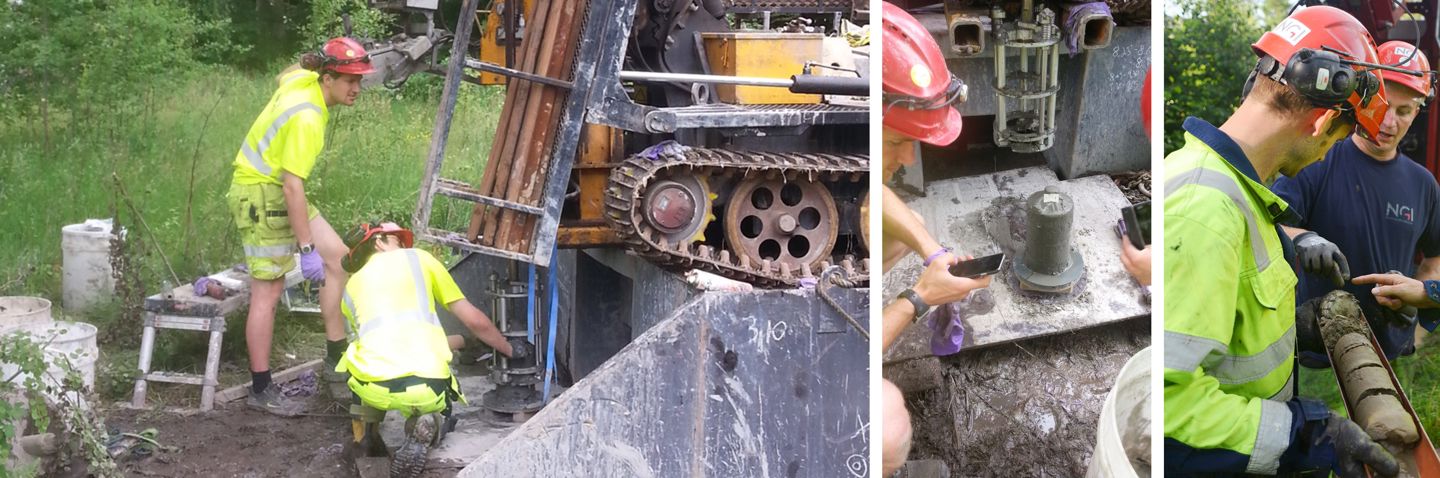 Sampling in the field - block dust (middle) and soil samples from Sonic drilling
