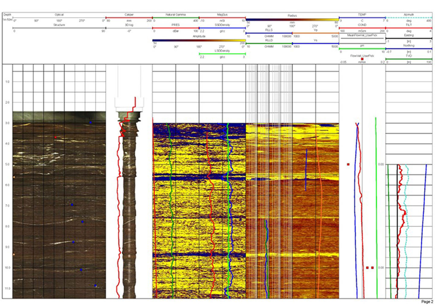 De innsamlete borehullsdata kan sammenstilles som en grafisk presentasjon av resultatene med hulldybde