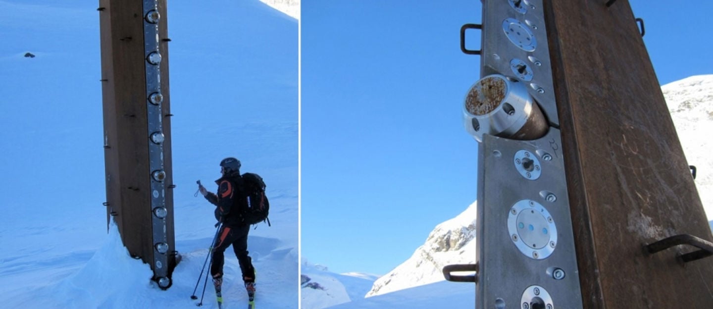 Instrumenterte master i skredbanen måler krefter, trykk og hastighet av skredet