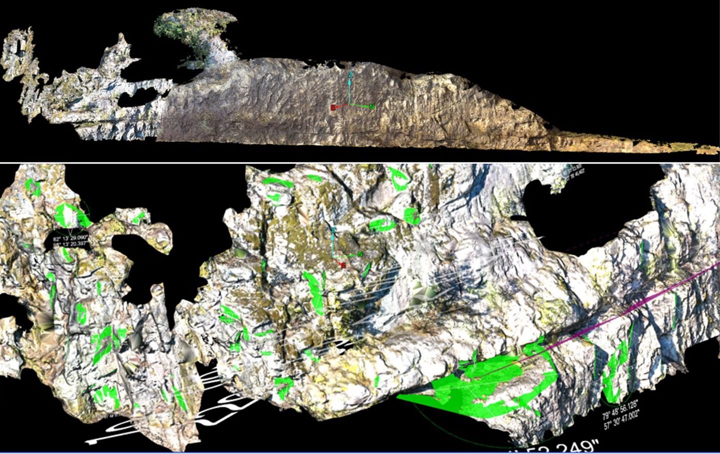 For å få plass til nytt dobbeltspor på Vestfoldbanen må en bratt fjellskjæring nært eksisterende bane sprenges ned. NGI har laget en 3D-bergmodell av skjæringen.